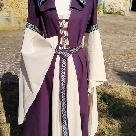 - les manches de la robe médiévale sont très amples et ornée d'un galon ainsi que le col. Une jolie ceinture assortie vous sera livrée avec votre robe. ( le motif de la ceinture ainsi que celui du galon de la robe peut varier suivant mon stock)