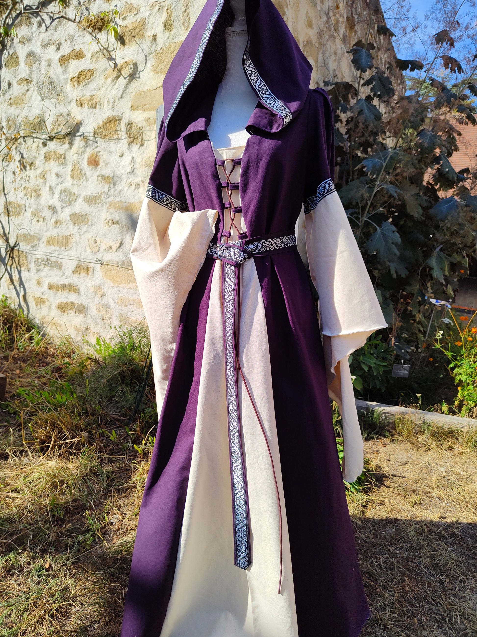 Robe médiévale ou elfique en lin violet à grande capuche et manches très longues, taille unique pour femme. Cette robe est faite de tissu de qualité supérieure pour garantir un ajustement durable et une sensation de confort. La capuche et les manches très longues en font la robe idéale pour les occasions médiévales et elfiques.