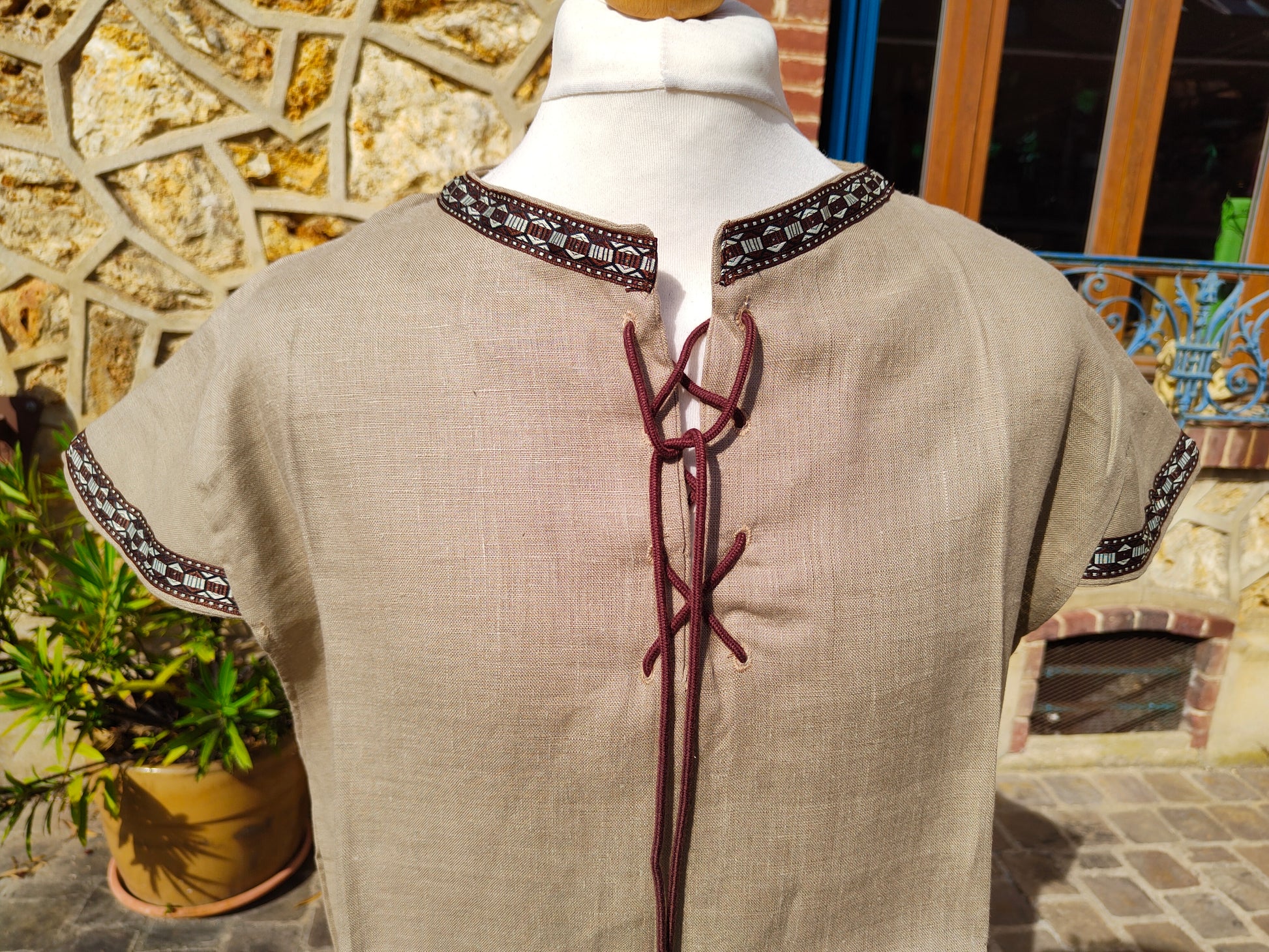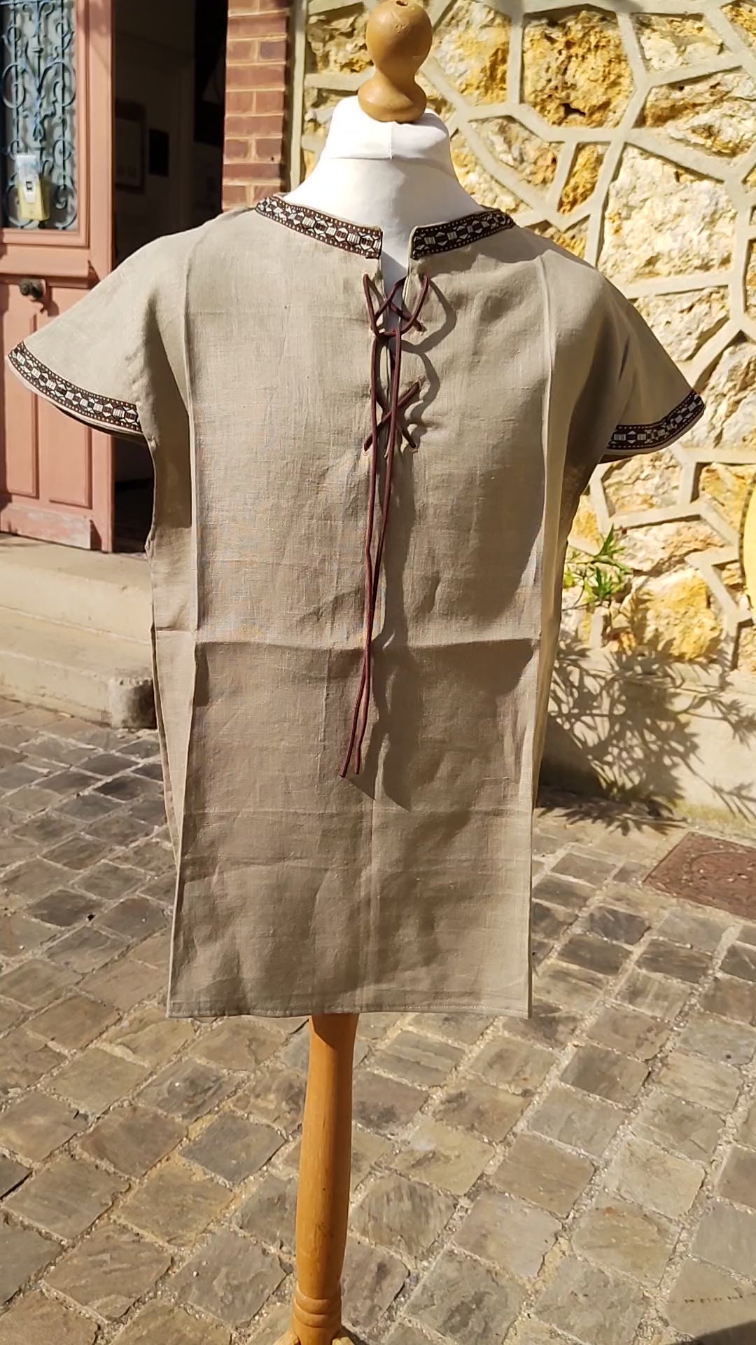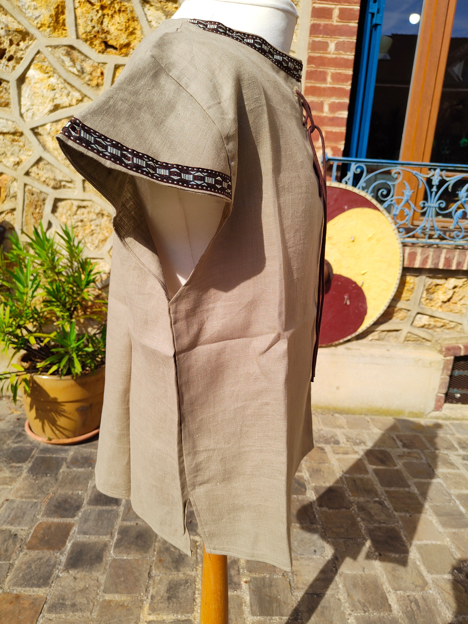 Transformez-vous en un véritable homme du moyen-âge avec cette tunique en lin beige. Idéale pour les guerriers vikings ou les archers elfiques, elle offre un style unique avec son galon et son laçage. Les emmanchures confortables la rendent parfaite pour vos aventures épiques.